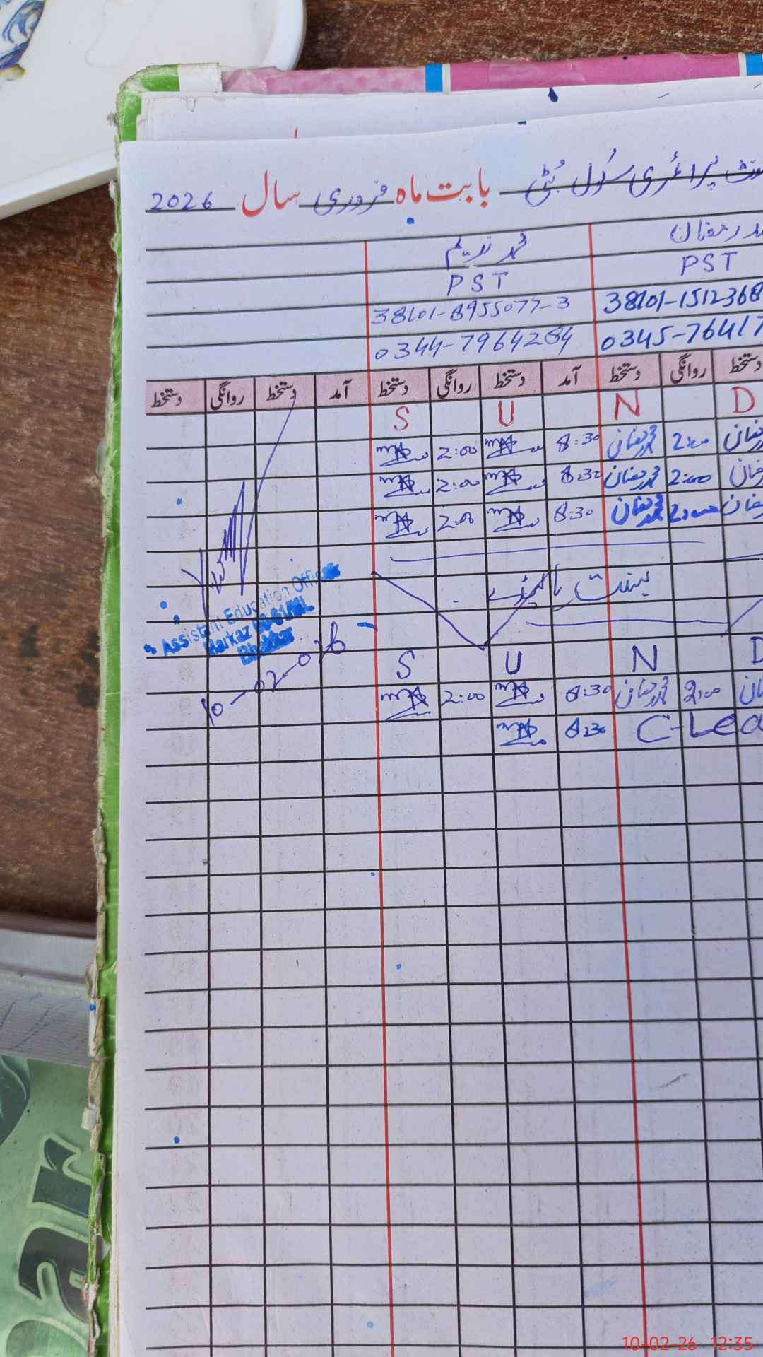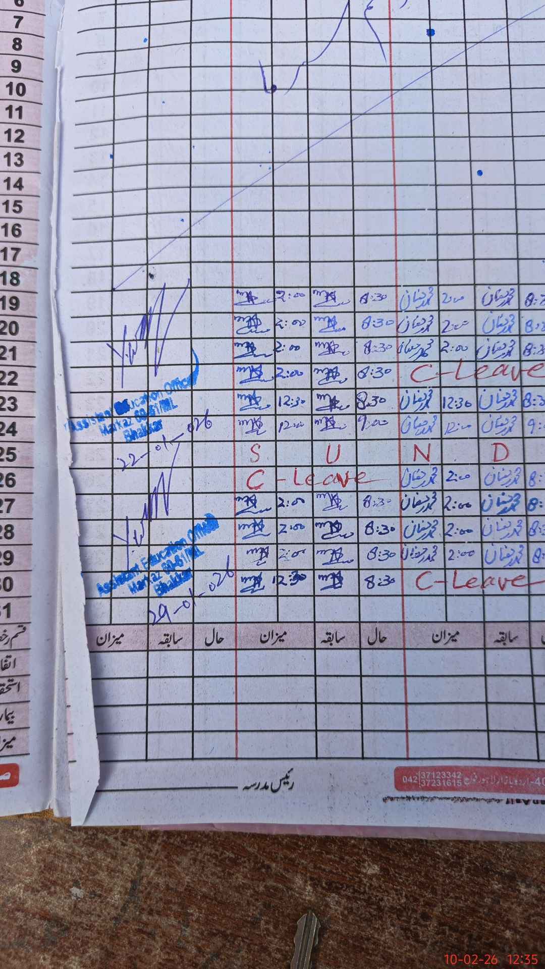 | CNIC | Full Name | Designation | R/C | Absence During Last Calender Month |
