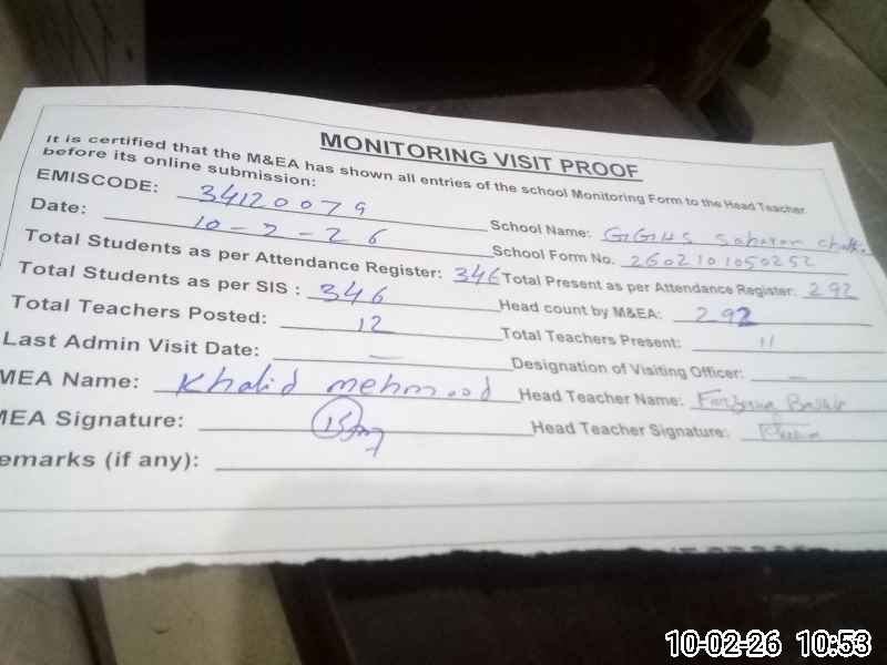 | EMIS Code: 34120079 | Name of School: GGHS SAHARAN CHATHA | |||