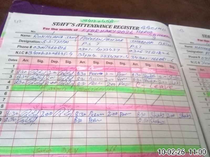 | Name: RU**** SH**** Designation: (School Headmaster's/Headmistress's) S.S.T.(Arts) Phone/Cell Number: 03**** |