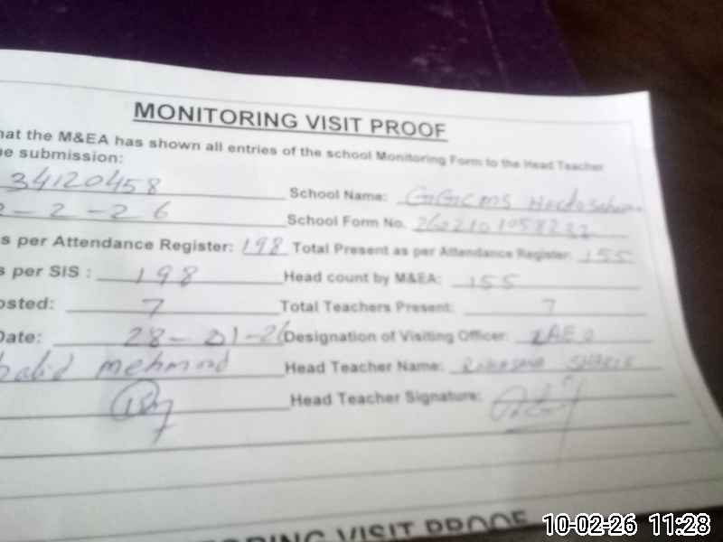 | Attendance Register | Head Teacher | MEA with School | Visit Proof |