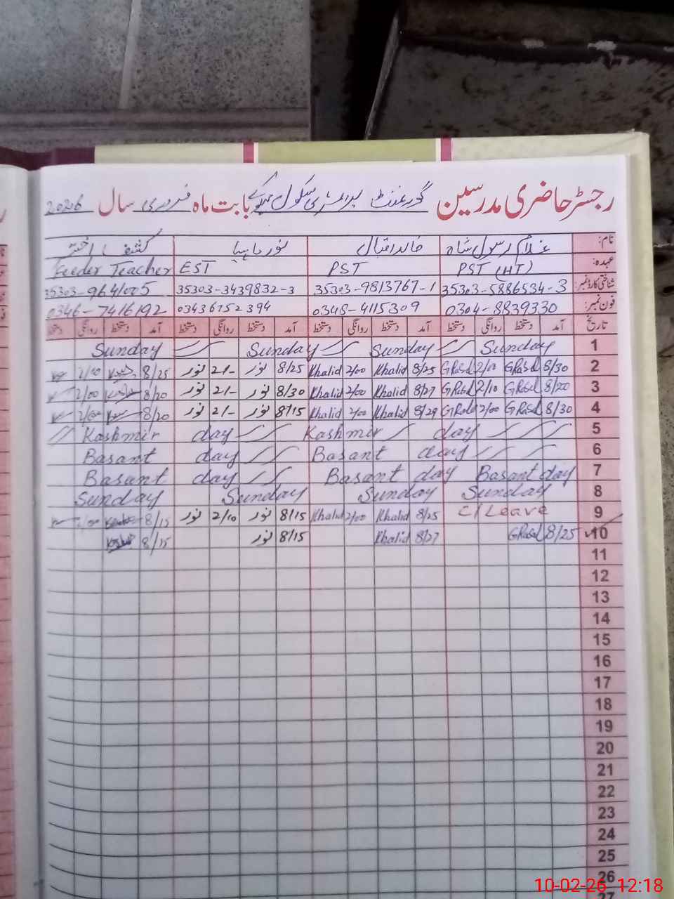 | Name: Gh**** Ra**** Designation: (School Headmaster's/Headmistress's) ECE Phone/Cell Number: 03**** |