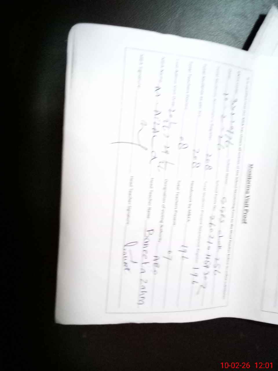 | Attendance Register | Head Teacher | MEA with School | Visit Proof |