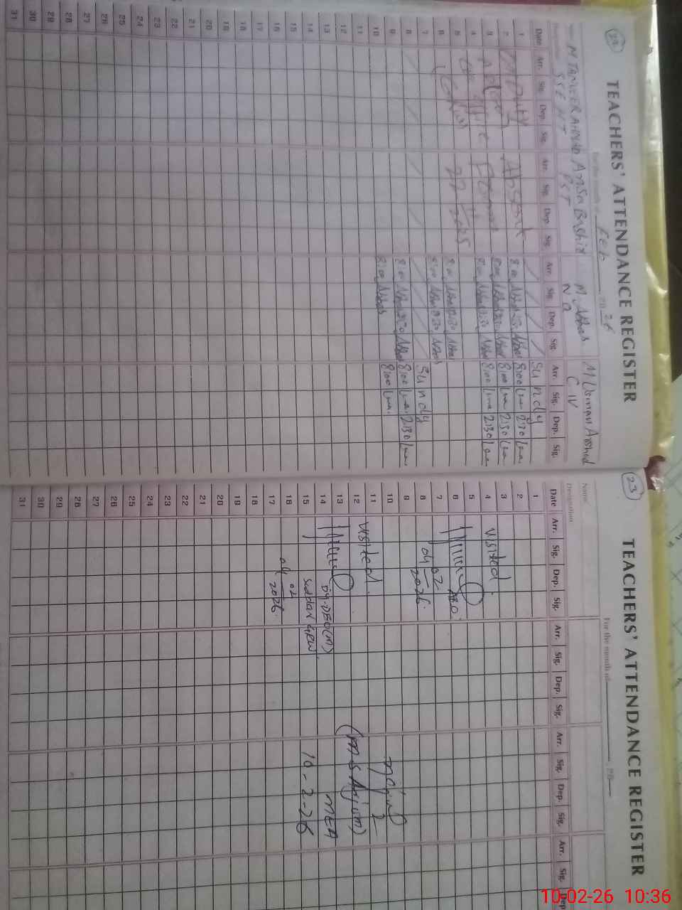 | 61**** | Mu**** Am**** Kh**** | Temporary | 0 | 0 | 0 | 0 | 0 | 0 | 0 | 0 | 0 | Absent (Un-Authorized) | |