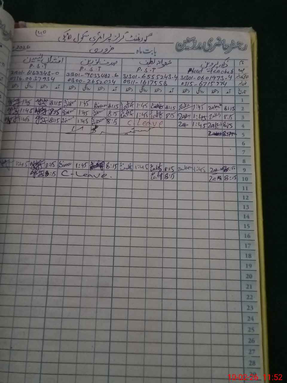 | Name: Za**** Pe**** Designation: (School Headmaster's/Headmistress's) PST Phone/Cell Number: 03**** |