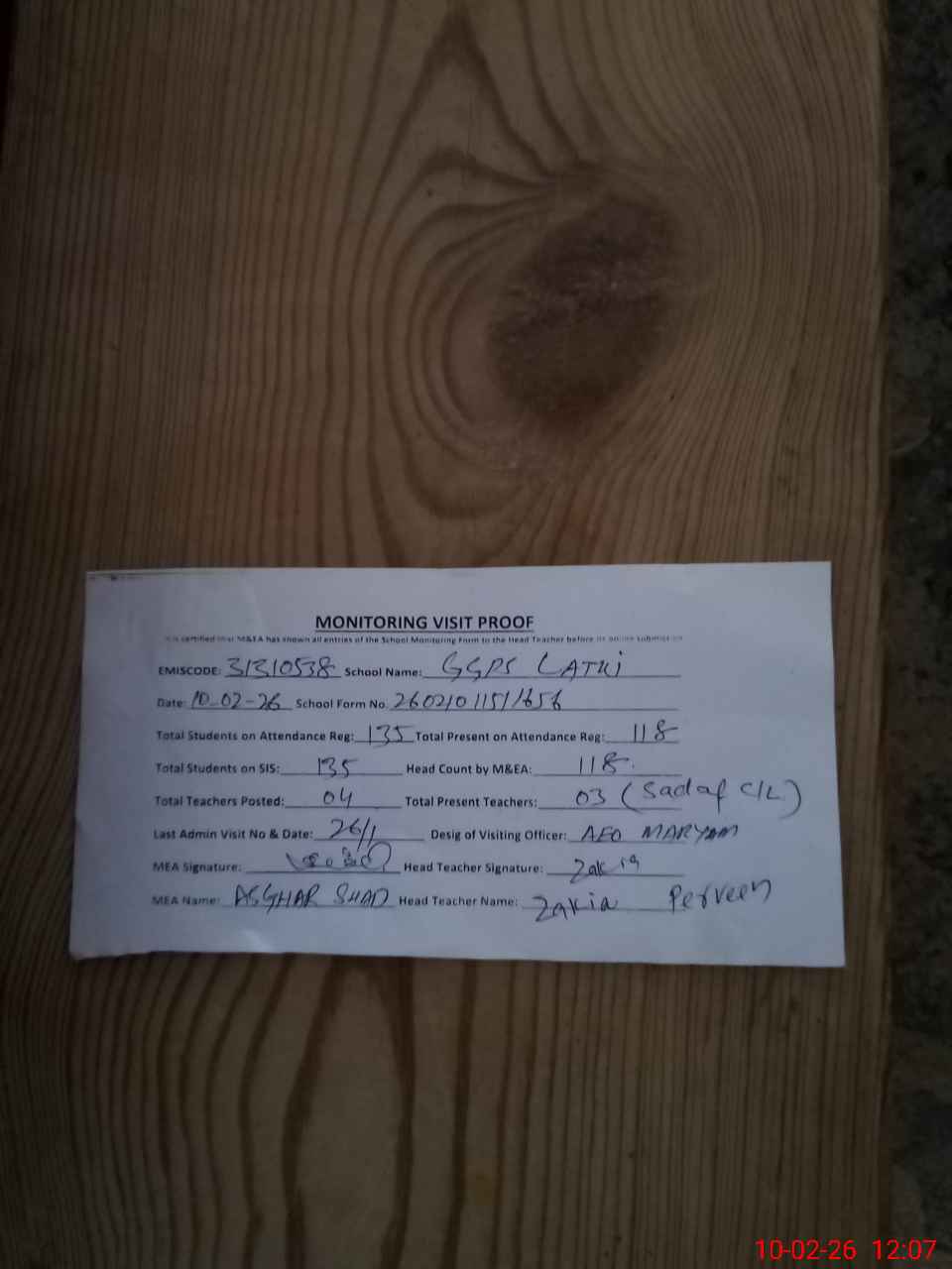 | EMIS Code: 31310538 | Name of School: GGPS LATKI | |||