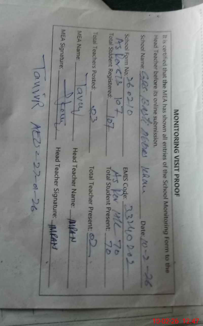 | EMIS Code: 33240202 | Name of School: GPS BASTI ABBASS KHAN | |||
