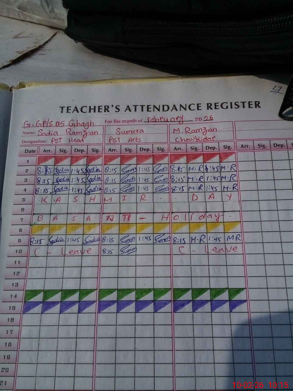 | Name: SA**** RA**** Designation: (School Headmaster's/Headmistress's) PST Phone/Cell Number: 03**** |