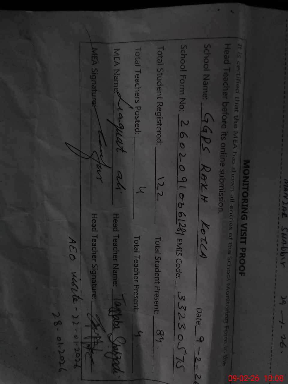 | EMIS Code: 33230575 | Name of School: GGPS RAKH KOTLA | |||
