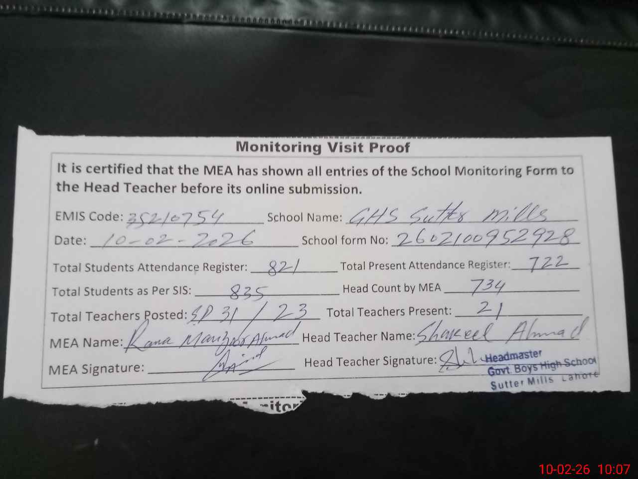 | Monitoring Date: 10-02-2026 | Start Time: 10-02-2026 09:03 AM | End Time: 10-02-2026 10:07 AM | Name of MEA: Ra**** Ma**** Ah**** | |