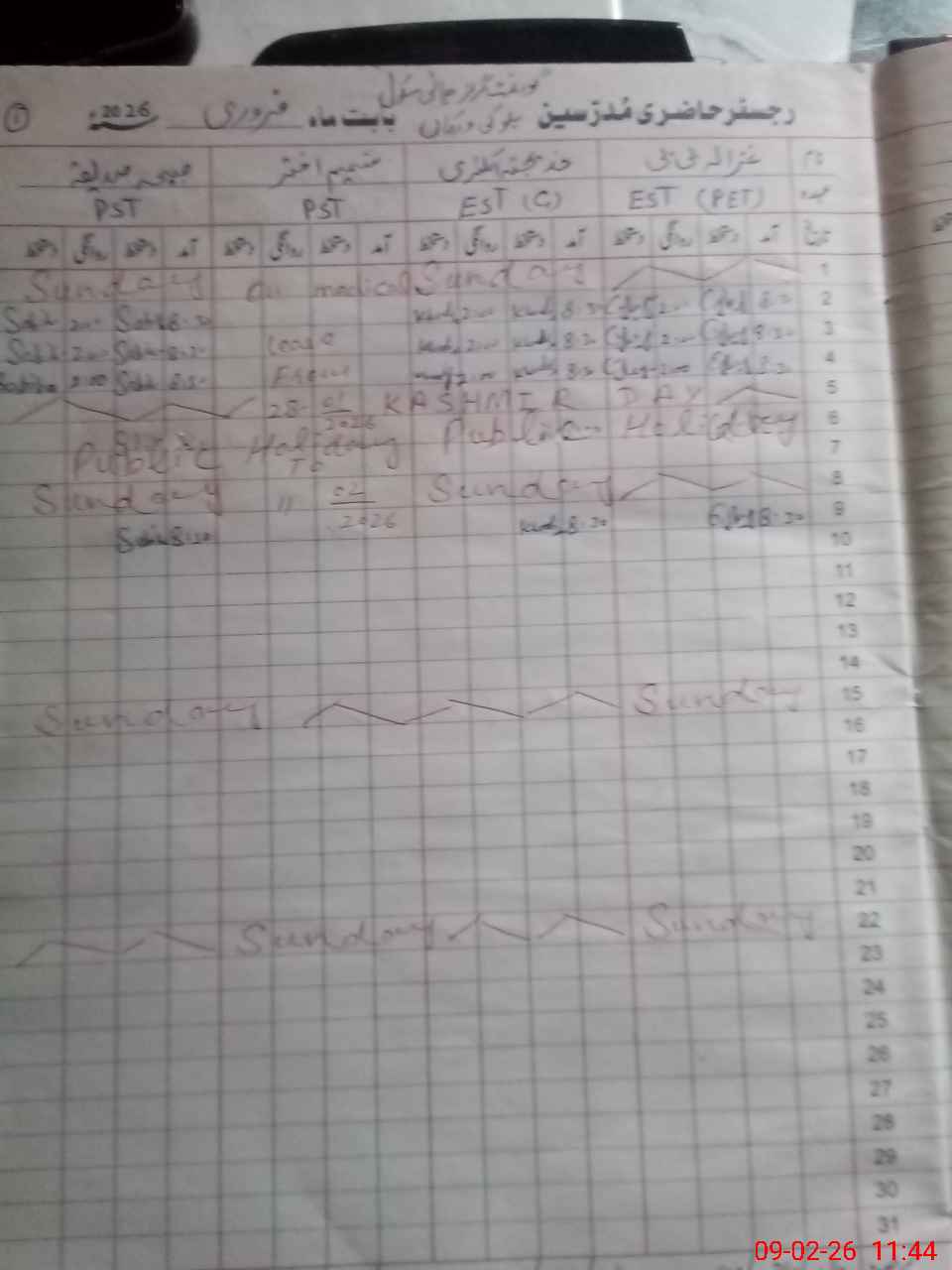 | 34**** | Sh**** Ak**** | PST | Regular | 0 | 0 | 0 | 0 | 0 | 0 | 0 | 0 | 0 | Medical |