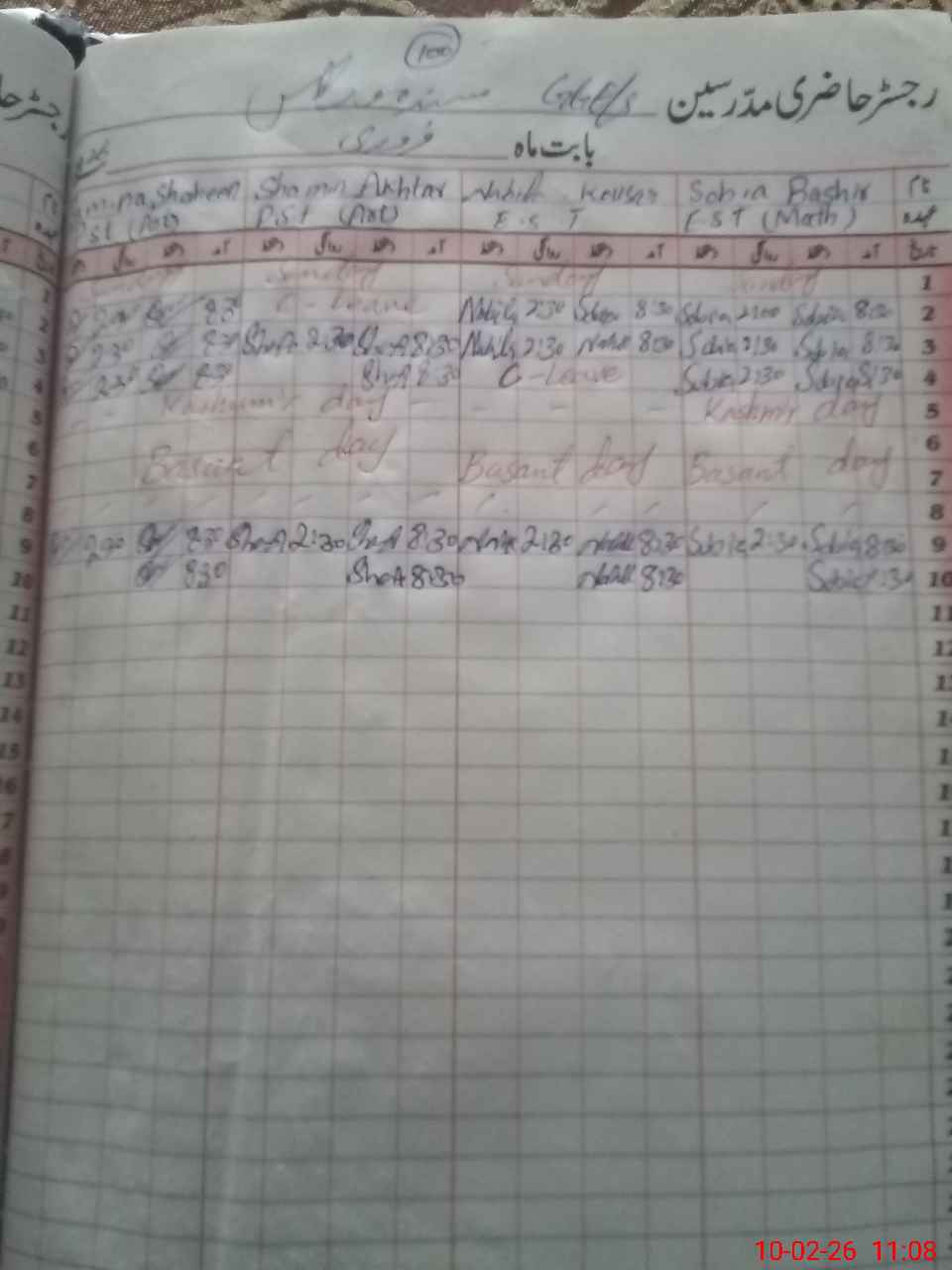 | Name: So**** Ba**** Designation: (School Headmaster's/Headmistress's) EST Phone/Cell Number: 03**** |
