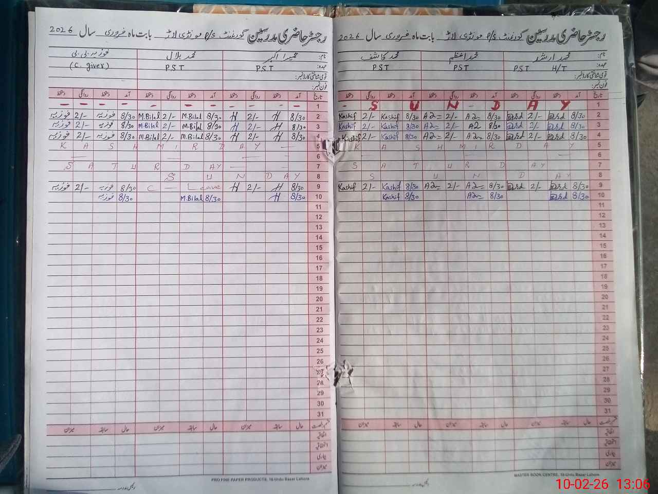 | CNIC | Full Name | Designation | R/C | Absence During Last Calender Month |