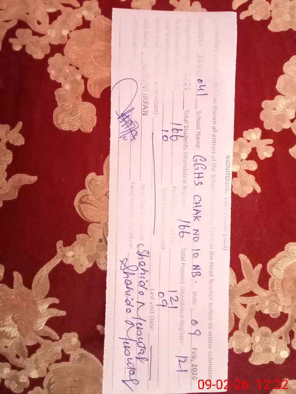 | EMIS Code: 38410041 | Name of School: GGHS CHAK NO.10 NB | |||