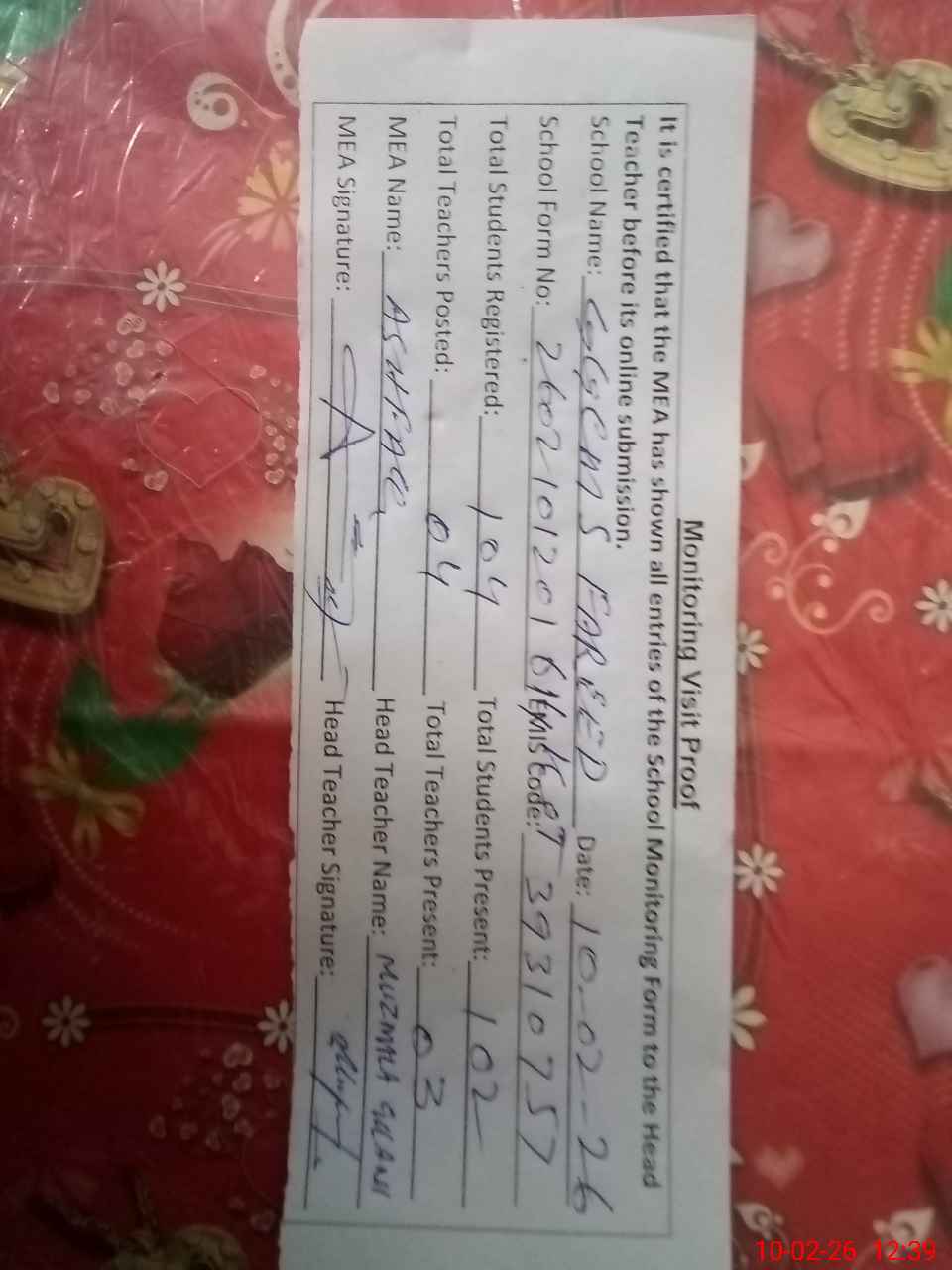 | Certified that this School was Inspected by the Undersigned MEA/DMO Today and the Information Stated Above is as Per Record. | |||||