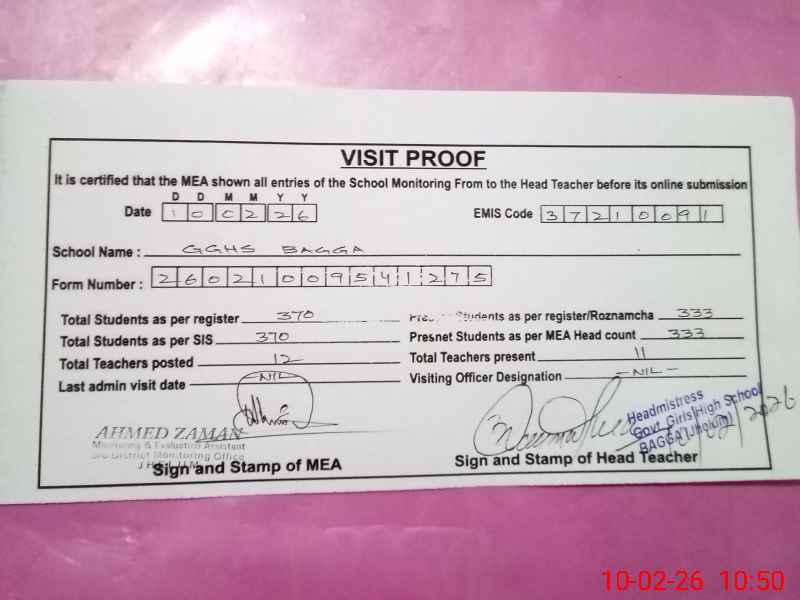 | EMIS Code: 37210091 | Name of School: GGHS BAGGA | |||