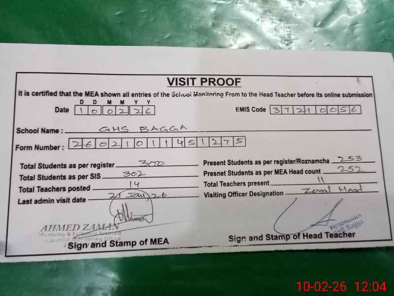 | EMIS Code: 37210056 | Name of School: GHS BAGGA | |||