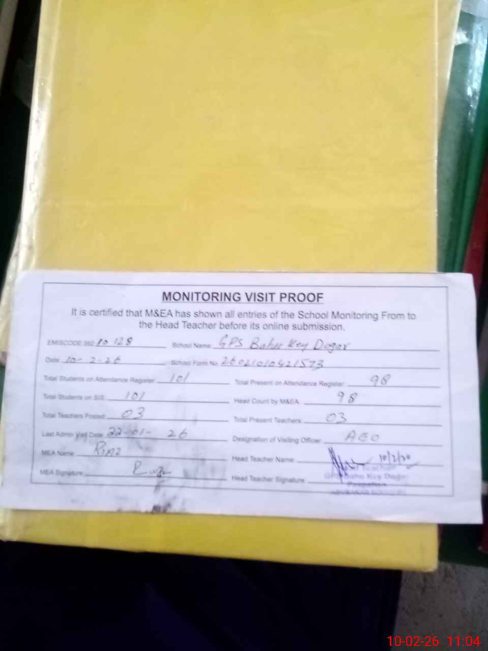 | EMIS Code: 39210128 | Name of School: GPS BAHU KEY DOGAR | |||