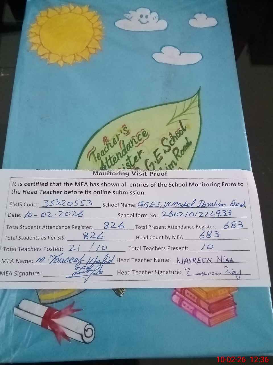 | Attendance Register | Head Teacher | MEA with School | Visit Proof |