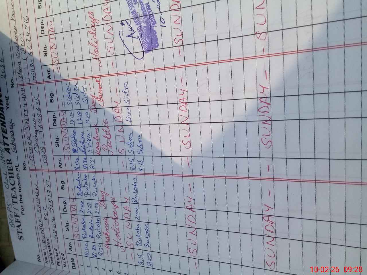 | 36**** | Sa**** Kh**** | PST Science/Maths | Regular | 0 | 0 | 0 | 0 | 0 | 0 | 0 | 0 | 0 | Maternity |