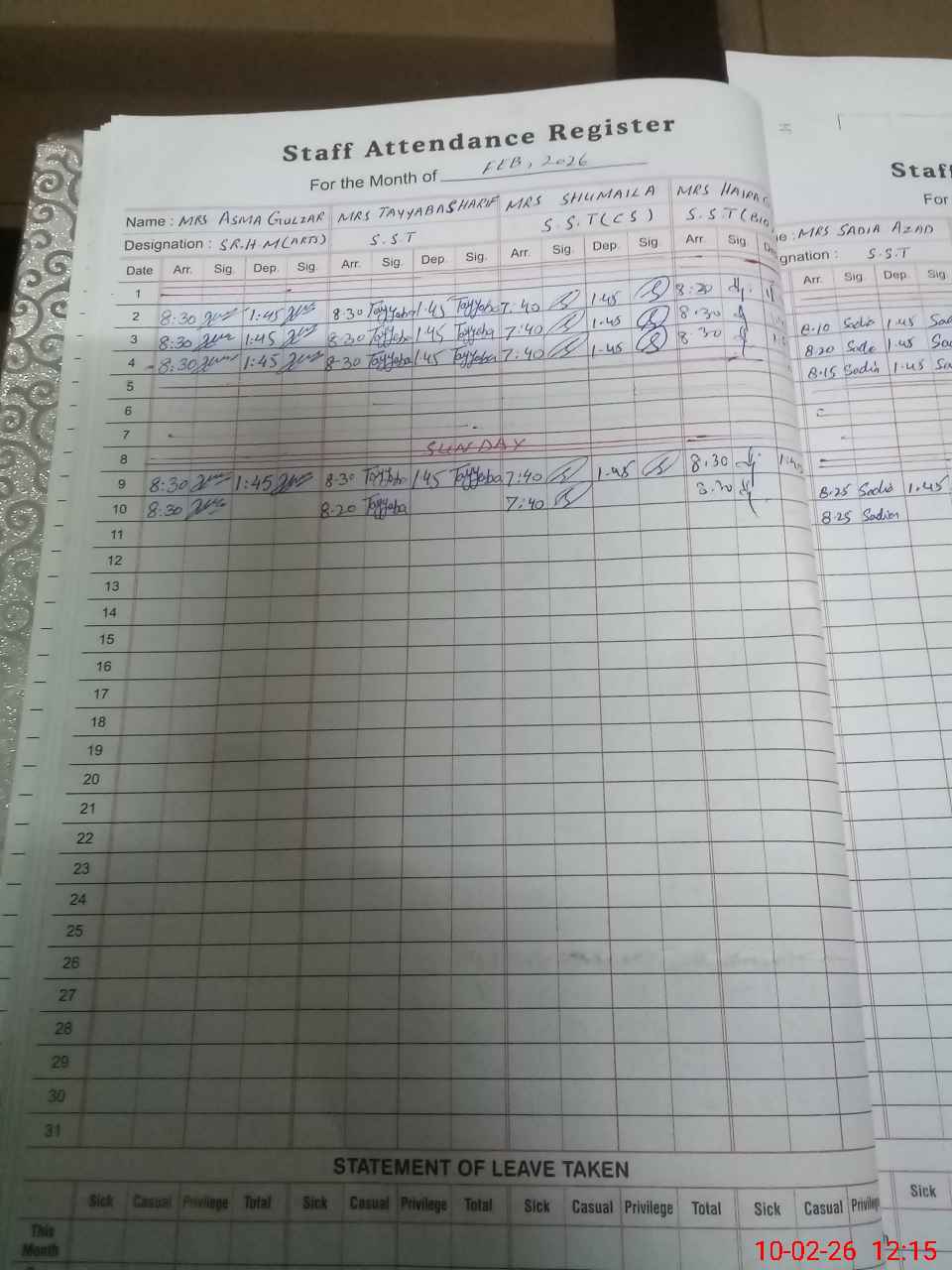 | 37**** | Sa**** Kh**** | PST Science/Maths | Regular | 0 | 0 | 0 | 0 | 0 | 0 | 0 | 0 | 0 | Exam Duty |