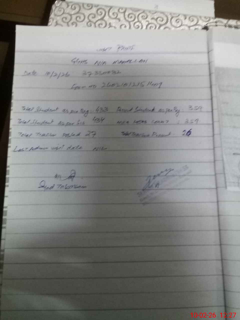 | Certified that this School was Inspected by the Undersigned MEA/DMO Today and the Information Stated Above is as Per Record. | |||||