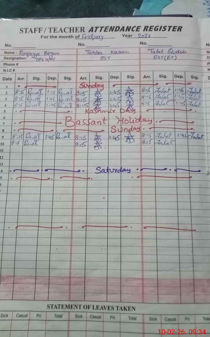 | Monitoring Date: 10-02-2026 | Start Time: 10-02-2026 09:22 AM | End Time: 10-02-2026 10:13 AM | Name of MEA: Za**** Ah**** | |