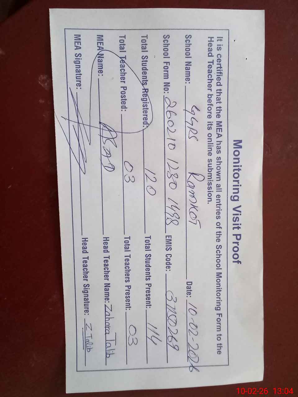 | EMIS Code: 31150269 | Name of School: GGPS RAM KOT | |||