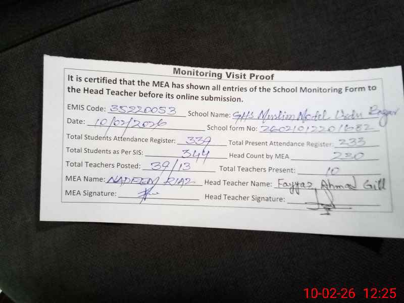| EMIS Code: 35220053 | Name of School: GHS MUSLIM MODEL URDU BAZAR LAHORE | |||