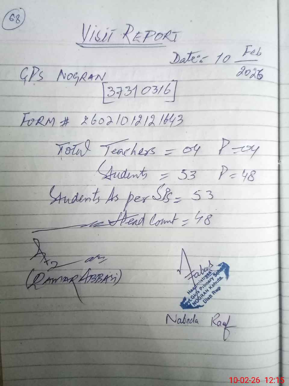 | Attendance Register | Head Teacher | MEA with School | Visit Proof |