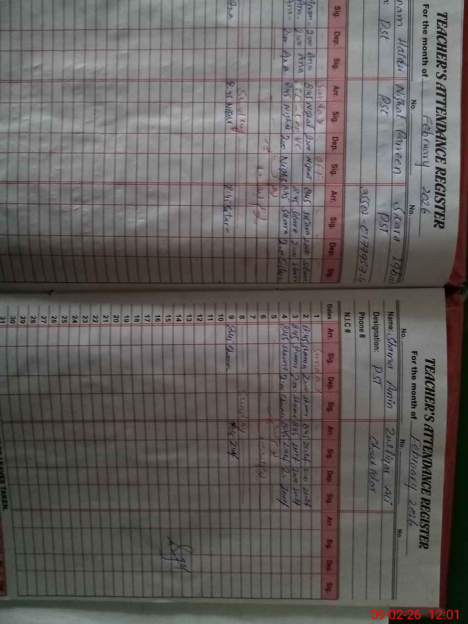 | CNIC | Full Name | Designation | R/C | Absence During Last Calender Month |