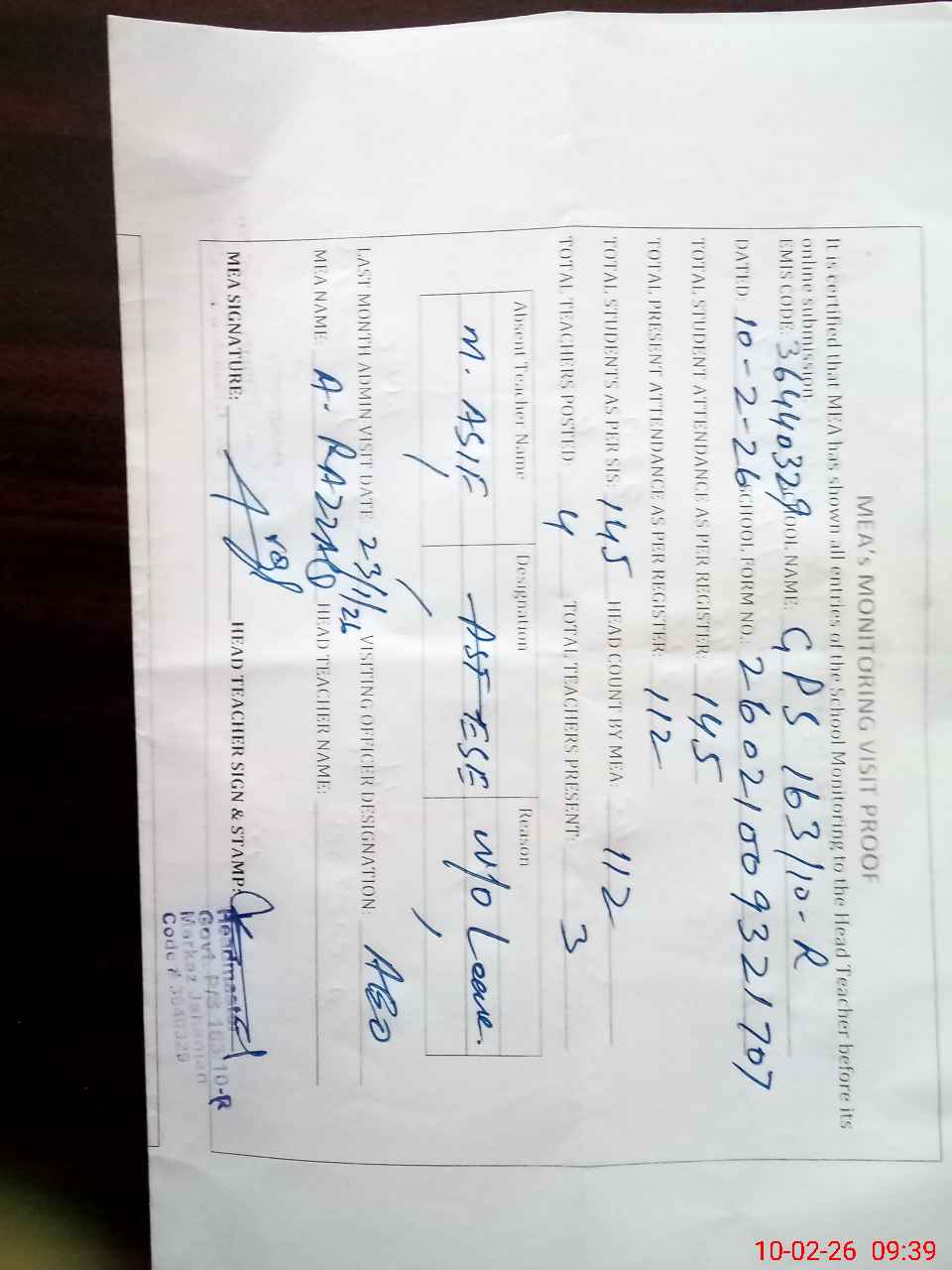 | EMIS Code: 36440329 | Name of School: GPS 163/10-R, JAHANIAN | |||
