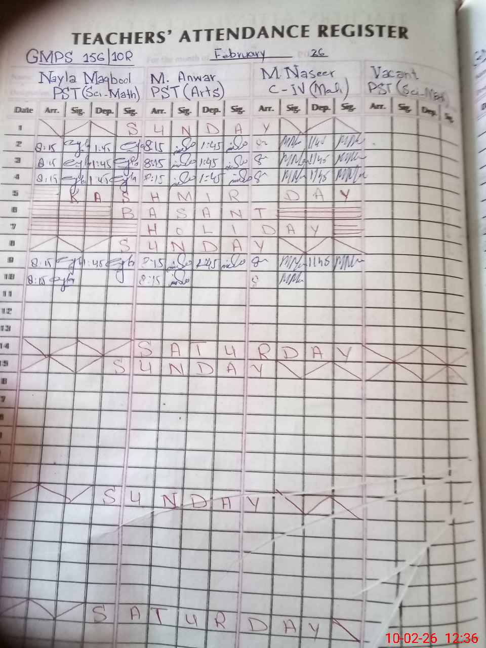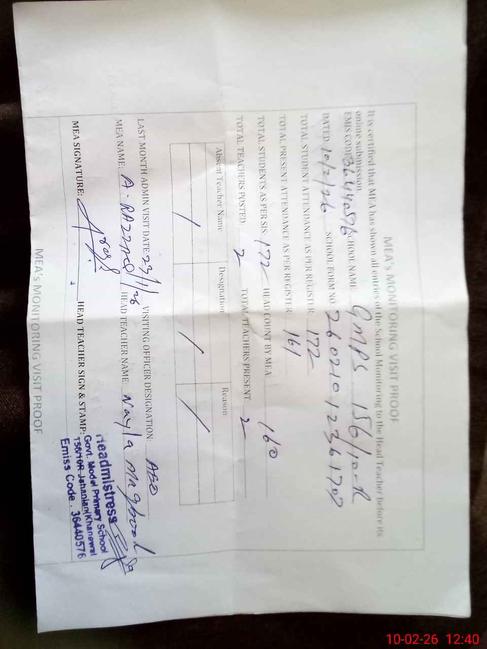 | EMIS Code: 36440576 | Name of School: GMPS 156/10-R, JAHANIAN | |||