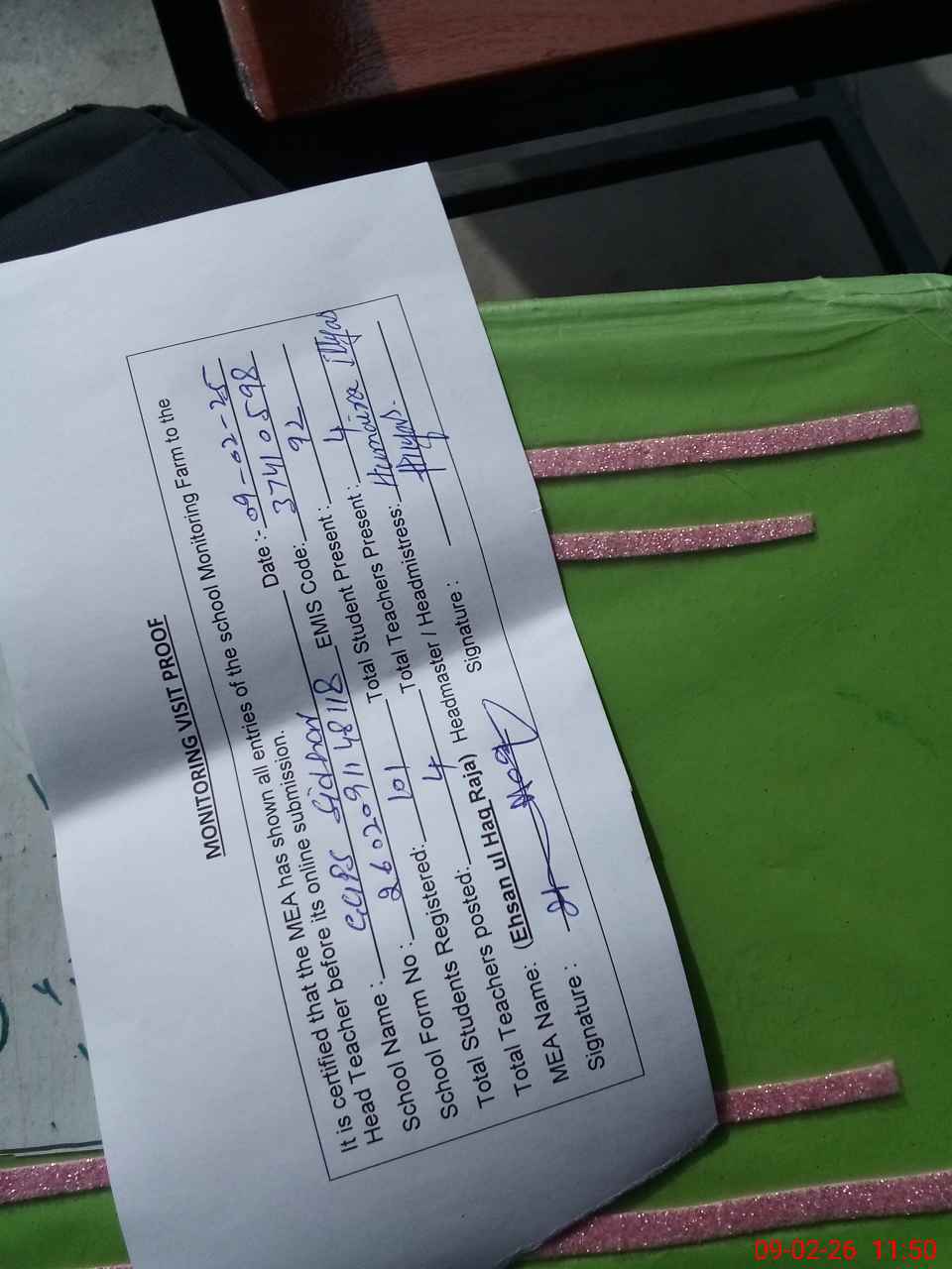 | Certified that this School was Inspected by the Undersigned MEA/DMO Today and the Information Stated Above is as Per Record. | |||||