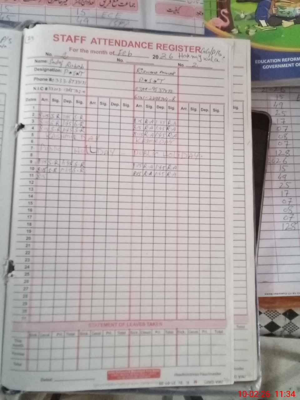 | Name: SA**** RU**** Designation: (School Headmaster's/Headmistress's) PST Phone/Cell Number: 03**** |