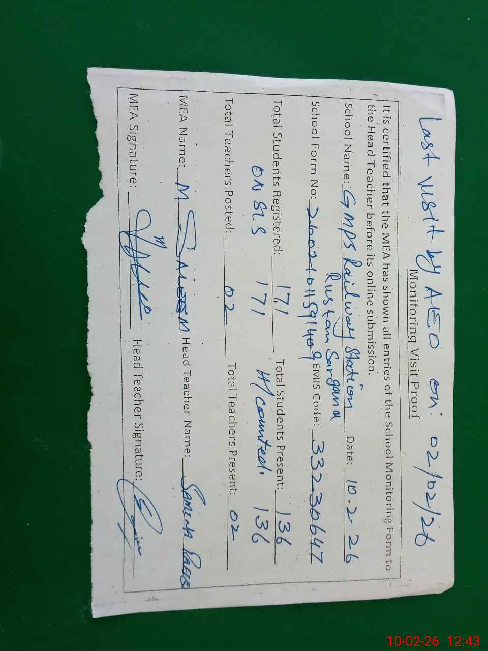 | EMIS Code: 33230647 | Name of School: GMPS RAILWAY STATION RUSTAM SARGANA | |||