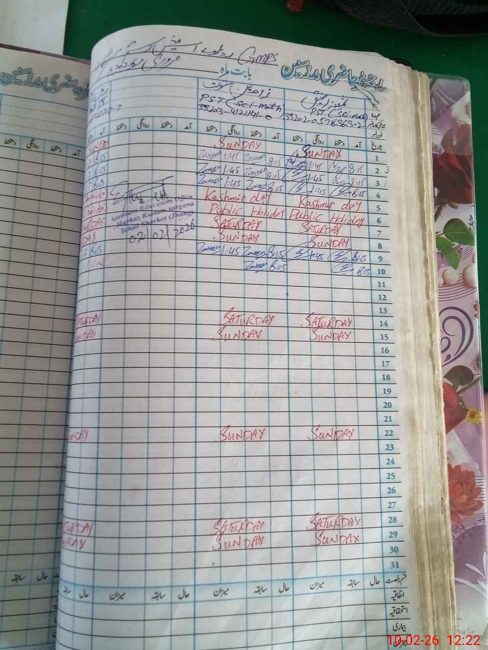 | Name: SA**** RA**** Designation: (School Headmaster's/Headmistress's) PST Phone/Cell Number: 03**** |