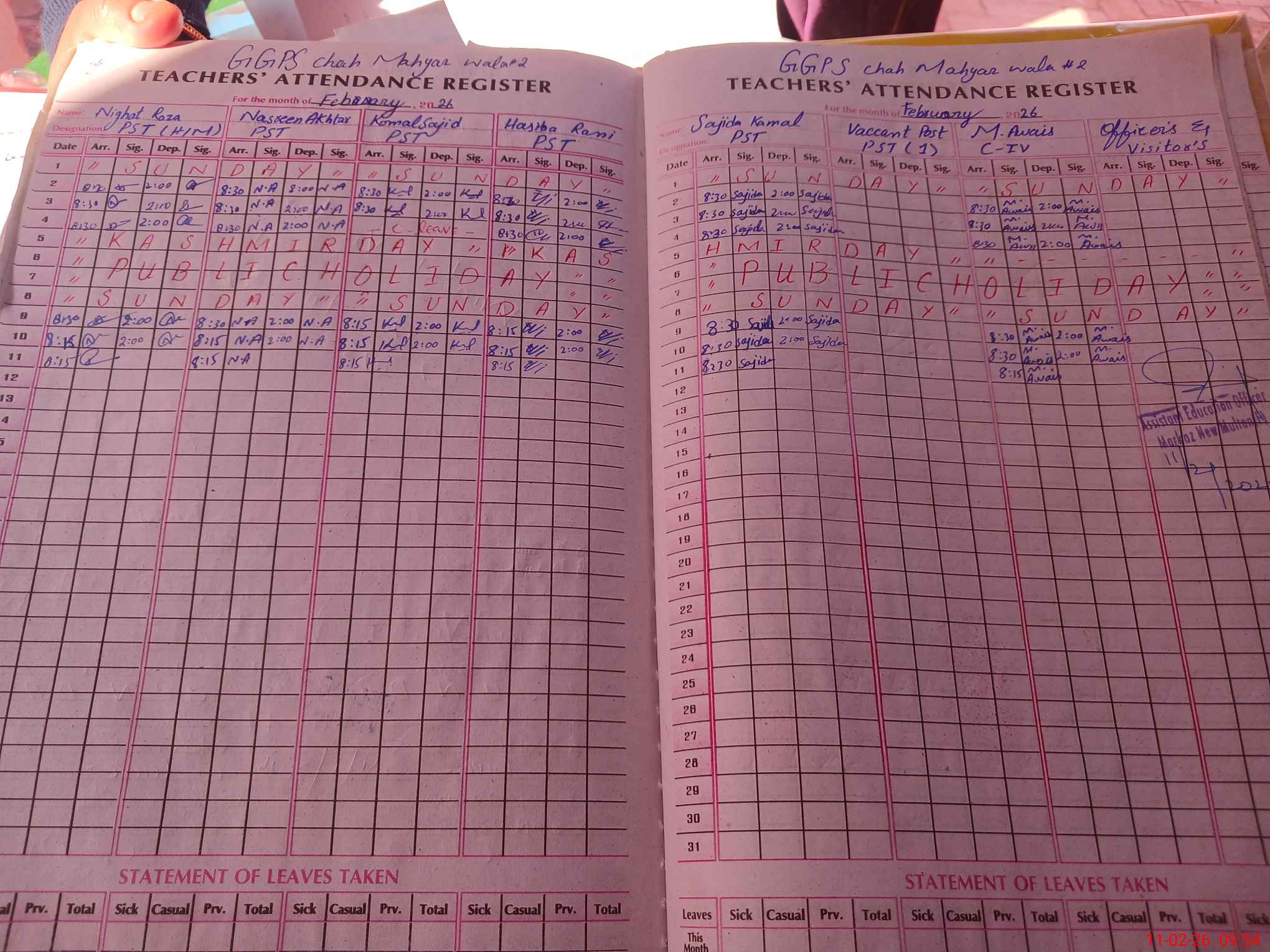 | EMIS Code: 36110200 | Name of School: GGPS CHAH MAYER WALA NO. 2 | |||