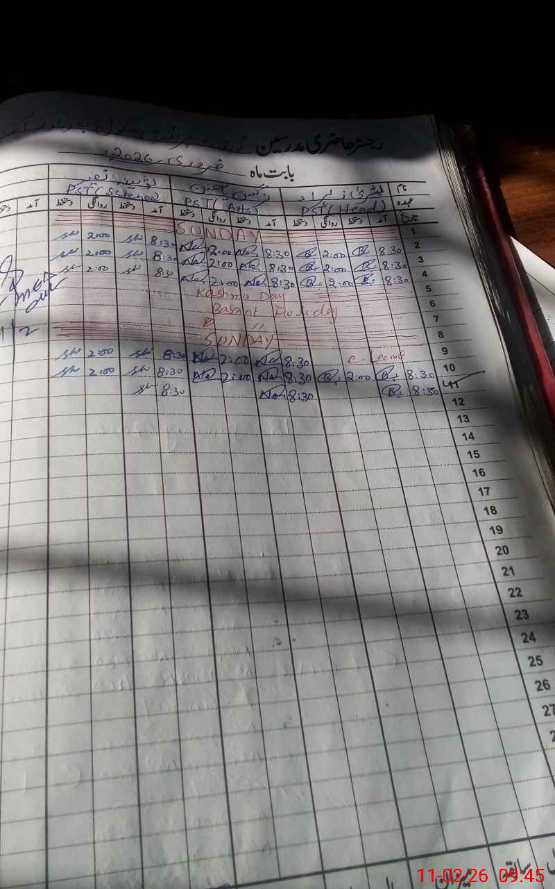 | CNIC | Full Name | Designation | R/C | Absence During Last Calender Month |