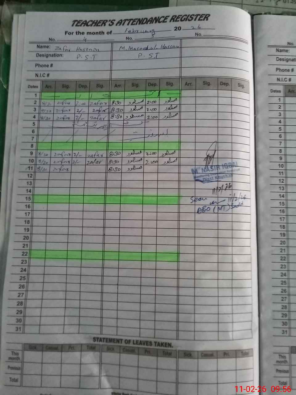 | Name: Mu**** Aa**** Ma**** Designation: (School Headmaster's/Headmistress's) PST Phone/Cell Number: 03**** |