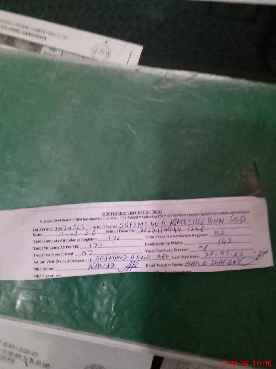 | EMIS Code: 38420663 | Name of School: GGPS MC NO.4 SATTELITE TOWN SARGODHA | |||