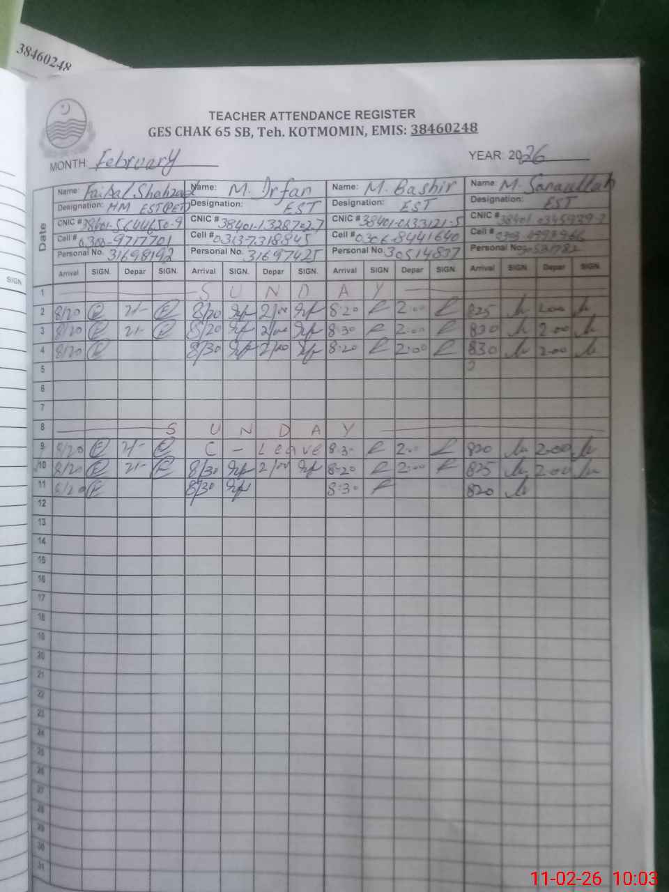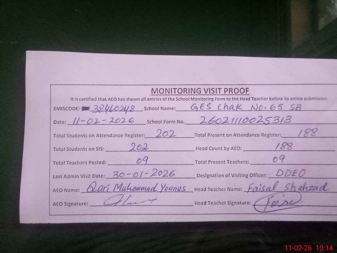 | EMIS Code: 38460248 | Name of School: GES CHAK NO.65 SB | |||