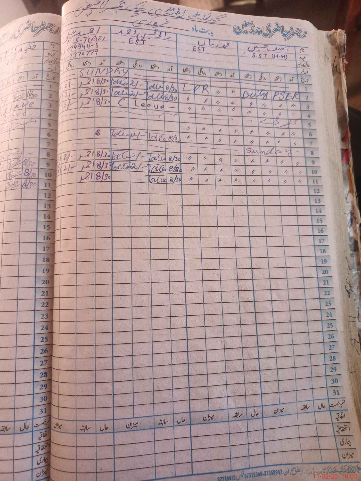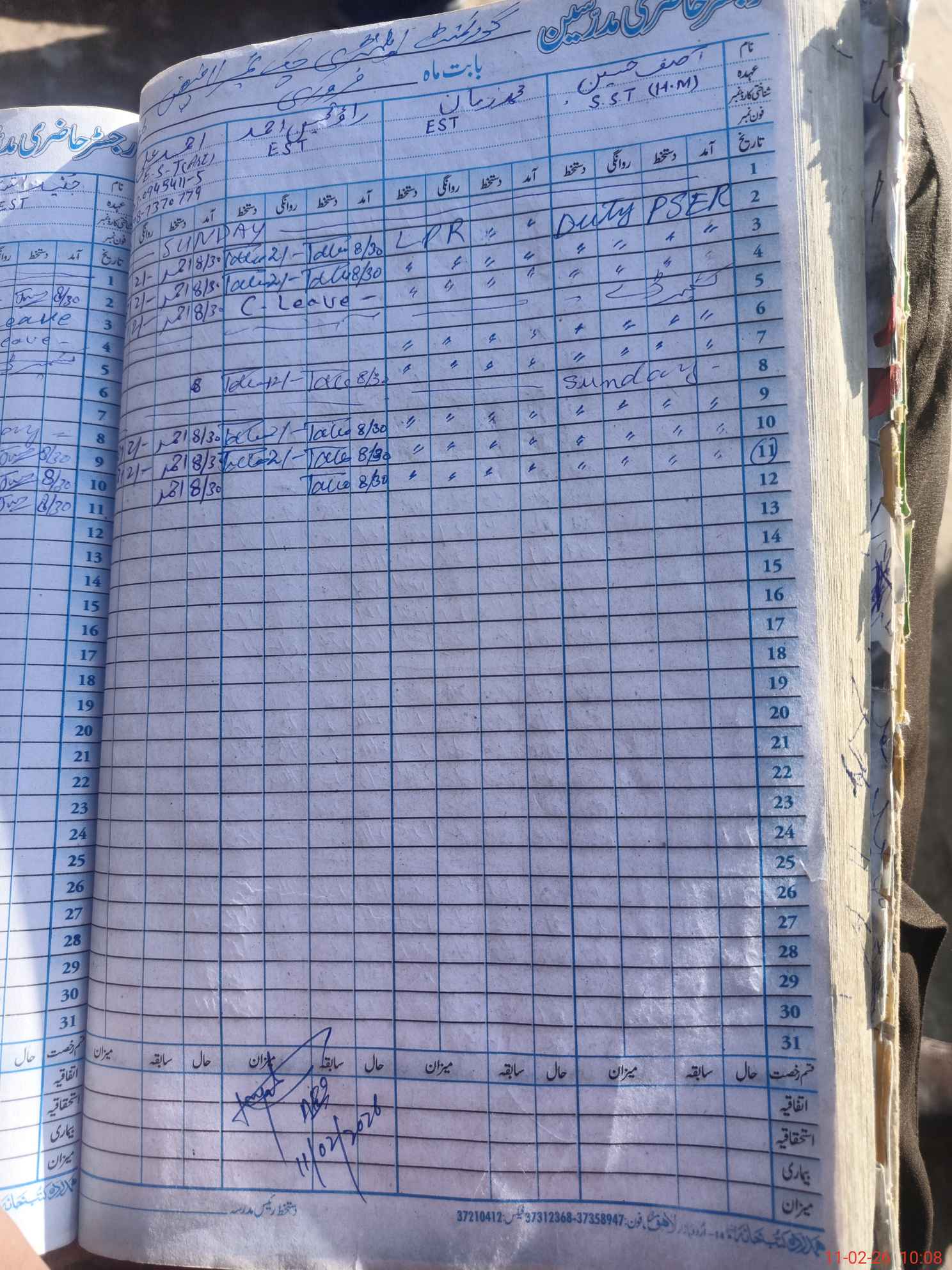 | 36**** | As**** Hu**** | SSE Urdu | Contract | 0 | 0 | 0 | 0 | 0 | 0 | 0 | 0 | 0 | Absent (Un-Authorized) |
