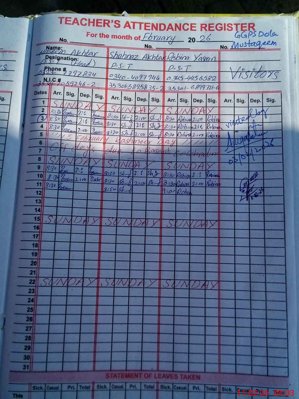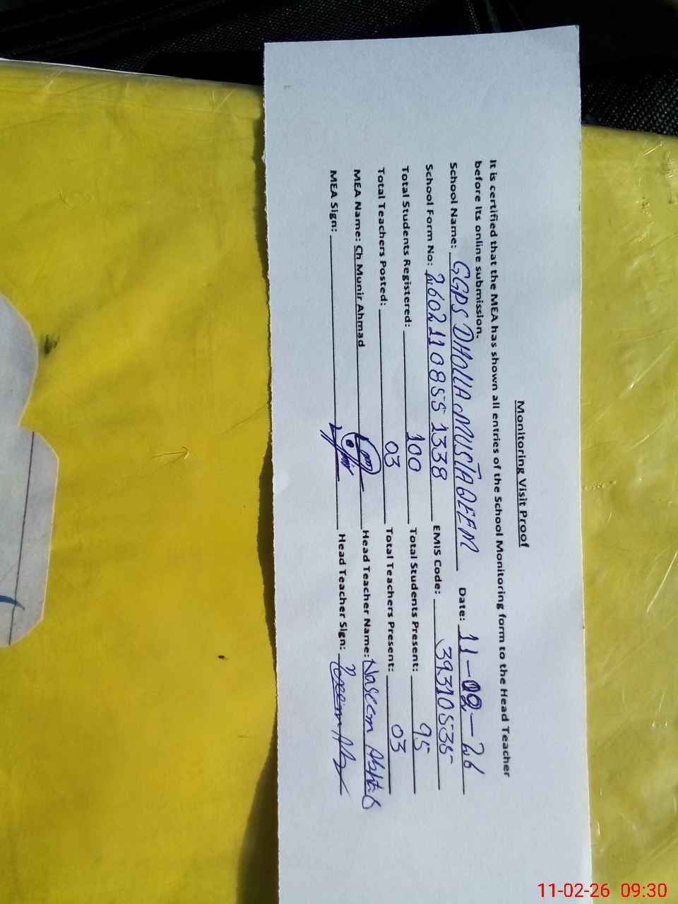 | EMIS Code: 39310535 | Name of School: GGPS DHOLLA MUSTAQEEM | |||