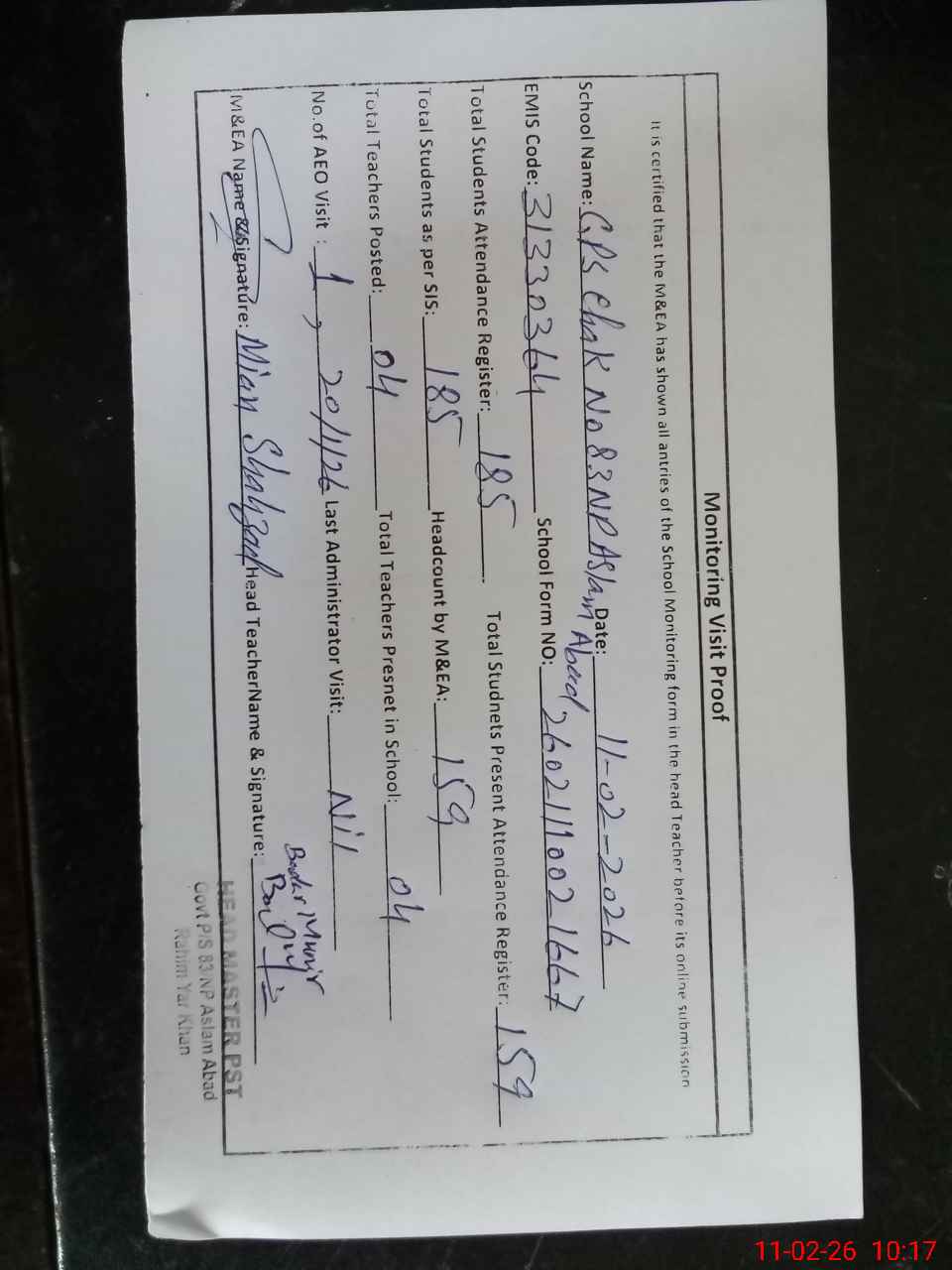 | EMIS Code: 31330364 | Name of School: GPS CHAK NO.83/NP ASLAM ABAD | |||