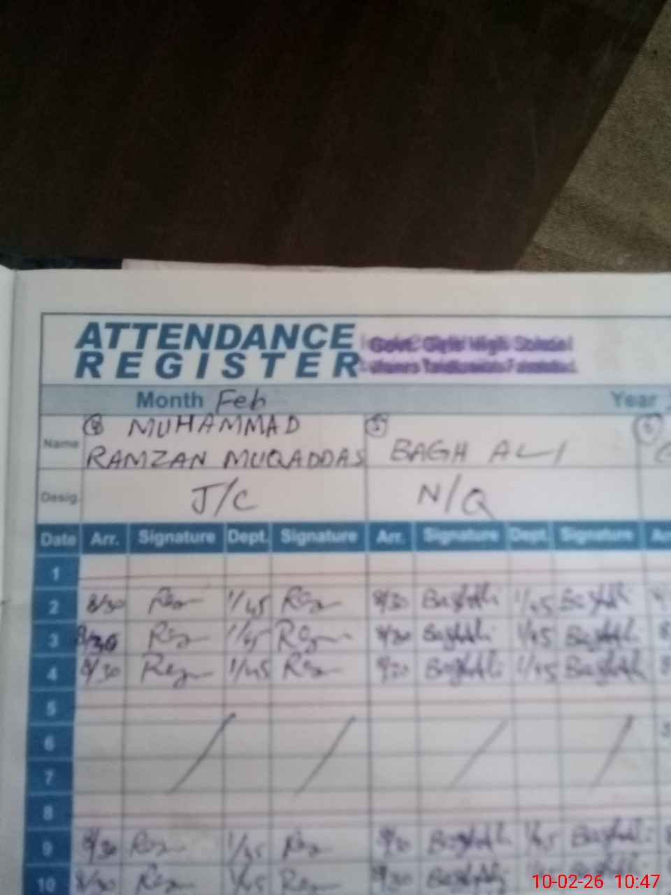 | Name: AY**** ZI**** Designation: (School Headmaster's/Headmistress's) SST ( GENERAL) Phone/Cell Number: 03**** |