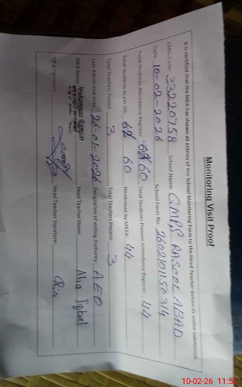 | EMIS Code: 33220758 | Name of School: GMPS RASOOL ABAD | |||