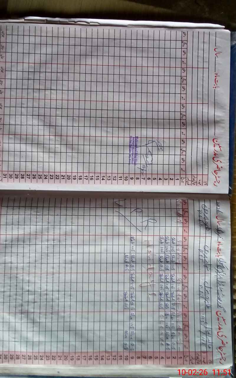 | CNIC | Full Name | Designation | R/C | Absence During Last Calender Month |