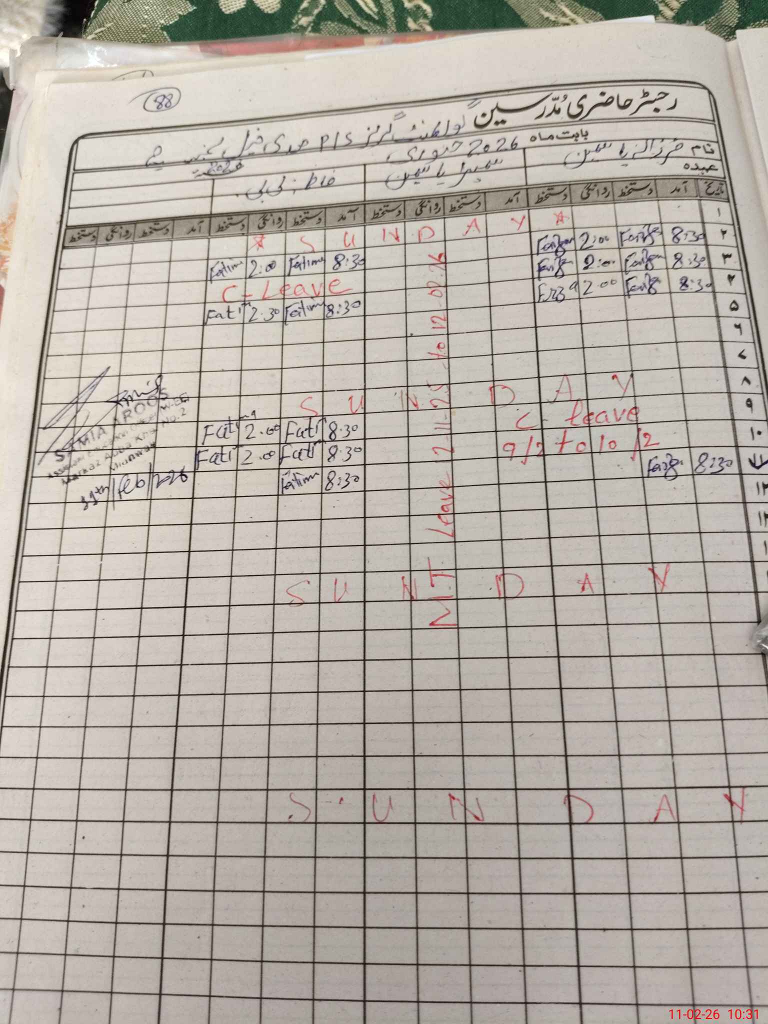 | Leave | Duty | Absent | Maternity | Medical | Ex- Pak |