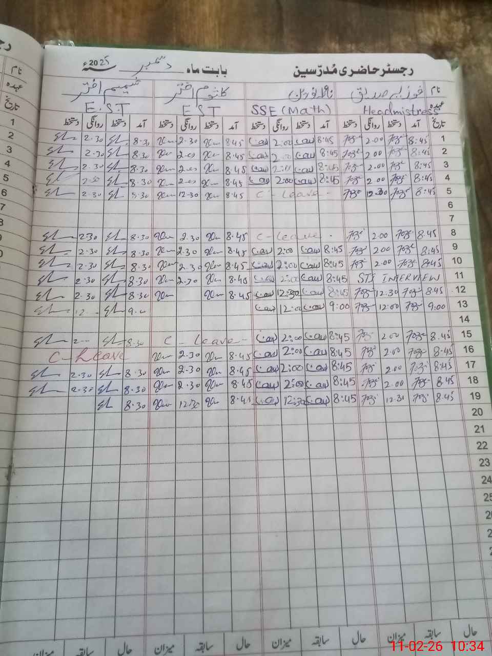 | CNIC | Full Name | Designation | R/C | Absence During Last Calender Month |