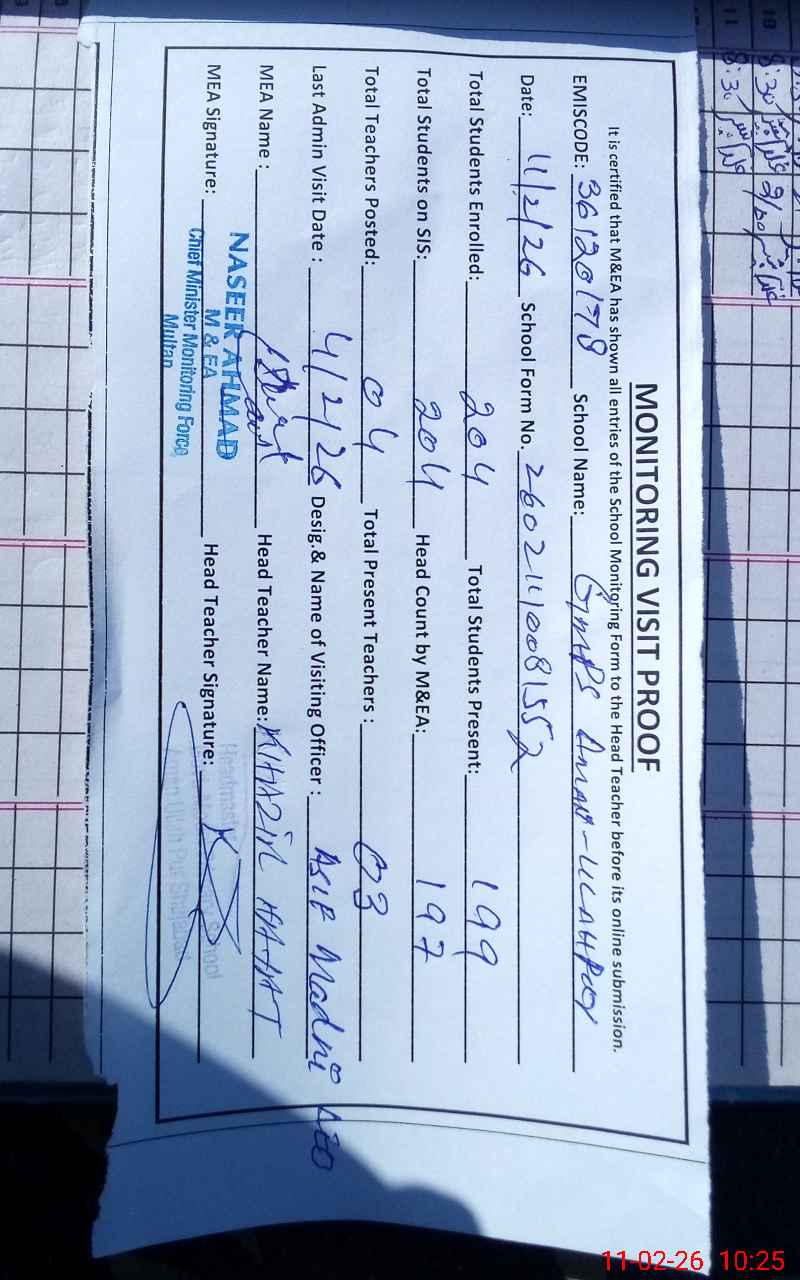 | EMIS Code: 36120178 | Name of School: GMPS AMAN ULLAH PUR SHUJABAD | |||